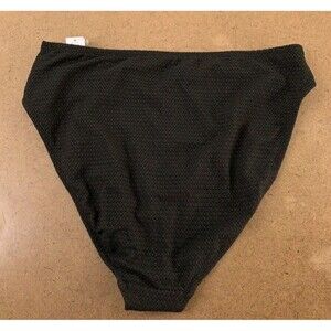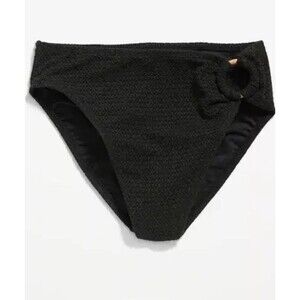 The product is a pair of Mid-Rise O-Ring Crochet-Knit French-Cut Bikini Swim Bottoms in Black, size 4XL from Old Navy. These bottoms are designed for plus-sized women and feature a solid black color with crochet accents. They are lined, have an elastic waist, and offer stretch for a comfortable fit. The bikini swim bottoms are a stylish and on-trend choice for women looking for high-quality swimwear in a flattering size.