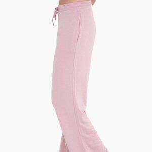 A light-weight pink lounge pant featuring an adjustable drawcord waist and hand pockets. The drapey fit makes them extra cozy and the perfect comfy bottoms.