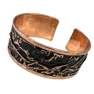 This boho copper bracelet is a true work of art, handcrafted with the utmost attention to detail. The boho-inspired designs are combined with a variety of bright and bold colors, making them a true statement piece. The combination of copper and vibrant hues creates a bold and eye-catching look that is sure to turn heads. This one is copper and black.