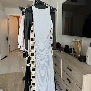 Minimalism at its finest. Perfect for day-to-night events, the Grainne midaxi dress is crafted from slinky stretch jersey to a bodycon silhouette with a universally flattering high boat neck. It’s enhanced with perfectly placed ruching at the waist, a sultry low back, and a center back split for ease of movement.