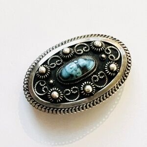 Midcentury 1940's Silver Filagree Brooch - Set with Blue stone