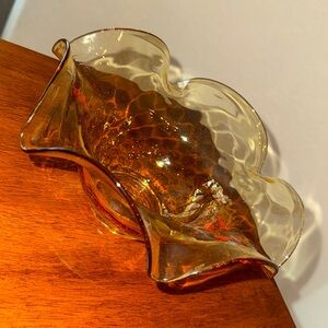 Midcentury Glass Handkerchief Bowl Viking Amber Candy/Fruit Bowl 8.5”x4.5”