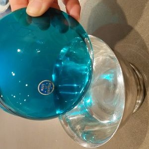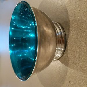 Midcentury Gorham Silver Plated Swedish Glass Lining Bowl tinted blue