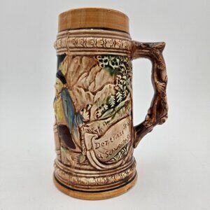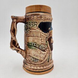 Midcentury Hand Painted Beer Stein German Phrased 7 Inch Mug Germany Japan