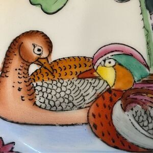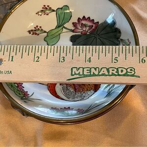 Porcelain Floral Water fowl Brass Bowls Made in China Vintage