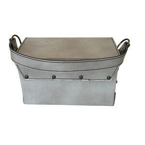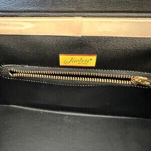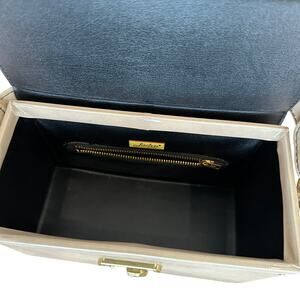 Midcentury Vintage Cosmetic Bag Top Handle Patent Leather Cream Jaclyn USA 8x5x4