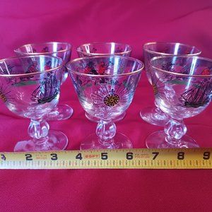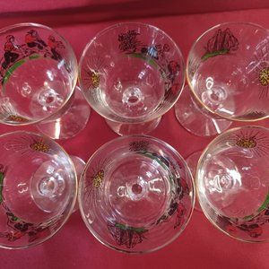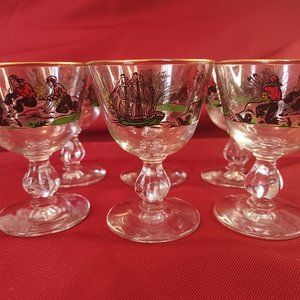 Midcentury Vintage Set of 6 Libbey Treasure Island Motif Pedestal Glasses