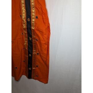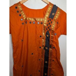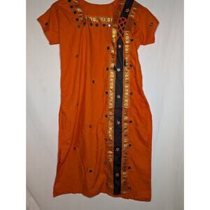 Middle Eastern Womens Patiyala Kaftan Dress Sz M Orange Beaded Gold Trim Indian
