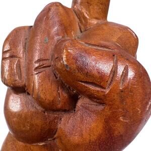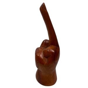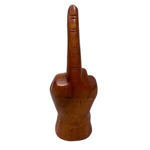 Middle Finger Flipping the Bird Wooden Carving Sculpture 7.5" Brown Unsigned