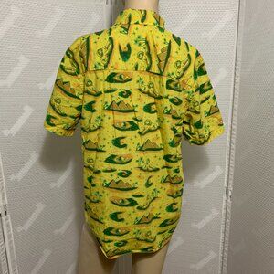 Middle Of Beyond Button Down Shirt MOB Pyramid Sphinx UFO Yellow Green Mens M