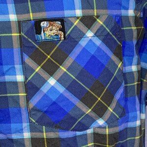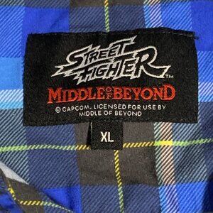 Middle Of Beyond Button Down Shirt Street Fighter II 2 Chun-Li Plaid MOB Mens XL