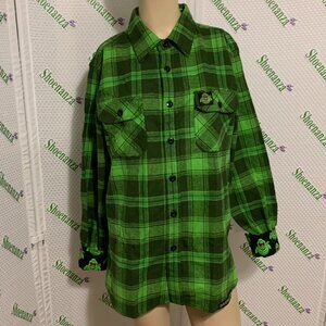 Middle Of Beyond Flannel Shirt Ghostbusters Slimer MOB Plaid He Slimed Me Mens M