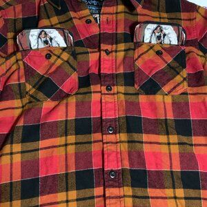 Middle Of Beyond Flannel Shirt Krampus Christmas Snow Globe Red Plaid Mens S