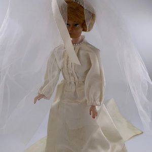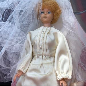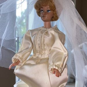 Midge Barbie as 1958/1951 vintage bubble hair auburn handmade wedding gown