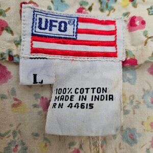 Vintage UFO Floral Print A Line Midi Dress With Button Front & Short Sleeves Lined Cotton Fabric Size L