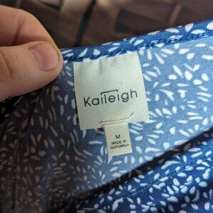 Blue and White patterned midi dress. Very flowy and comfortable. Has decorative side tie.