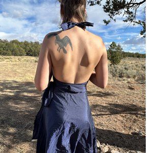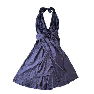 Midi Halterneck Open Back Taffeta Wrap Dress