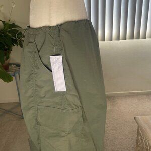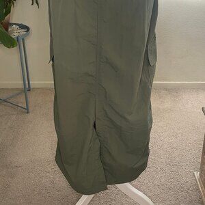 No Boundaries brand Parachute Midi skirt in khaki green. Size M (7-9). Adjustable at both waist and hem. Cargo style pockets. Nylon drawstring. Intended for a photo shoot but was never used. NWT.