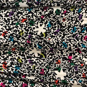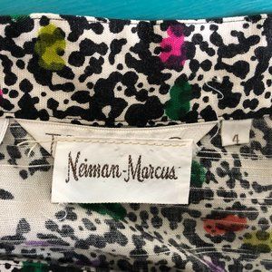 This skirt runs small! It's from the 90s; vintage Neiman Marcus. Black and white with bursts of color throughout the skirt! Very fun and flirty skirt to wear all year long.