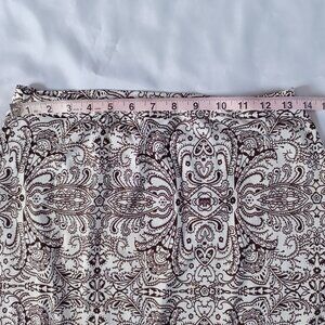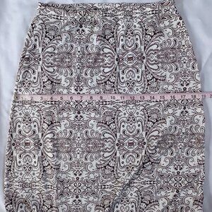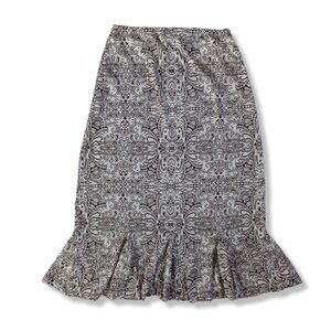 Midi Skirt Brown White Tight Retro Floral Print Ruffle Pencil Modest Size S