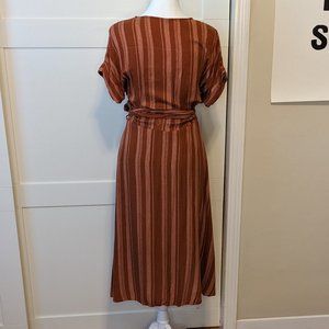 Midi Terra Cotta Striped Wrap Dress Size S