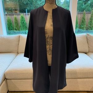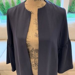 Collarless light jacket with 3/4 bell sleeve. Dark navy. Never worn.