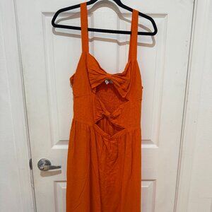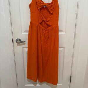 Orange midi dress with bow cut out details. Thick straps, Size XL