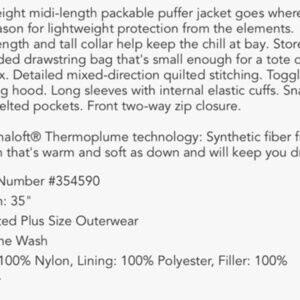 Midi packable puffer jacket with thermoplume tech bronze 18|20 NWOT