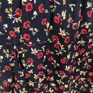 Lovely flowered print…red flowers on a navy background makes this piece just so endearing! The 100% polyester fabric is super light and flows so nicely. Fully lined! Machine washable and does not need to be ironed, just hang it up right from the washer. Skip the dryer. You’ll look so well put together this Spring wearing this sweet skirt.