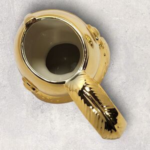 Channel your inner noble (or medieval space marine?) with this bold, gleaming gold knight helmet mug! A retired Medieval Times collectible from 2001, this over the top tankard features a full face visor, sculpted plume design, and armored rivets. A total scene stealer for display, cosplay, or your own personal feast.
