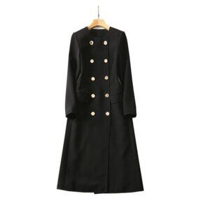 Mid-length trench coat with round neck