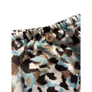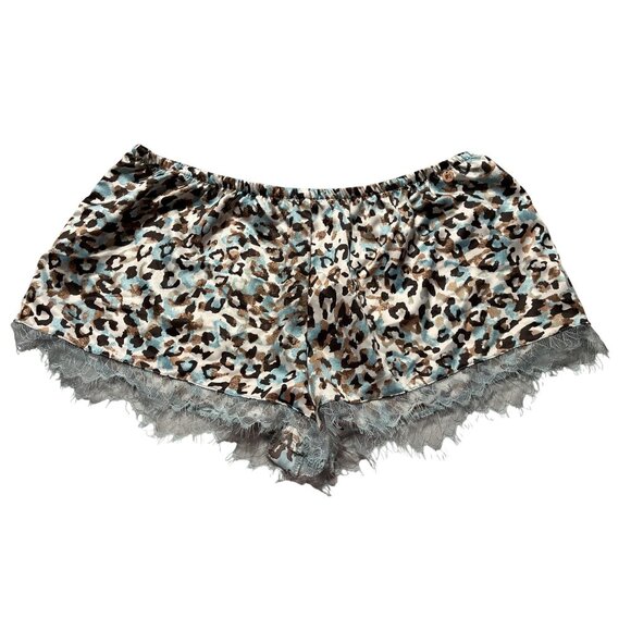 Midnight Bakery Teal Brown & Black Leopard Print Silky Sleep Shorts W/ Lace Trim