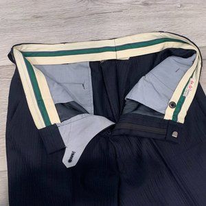 The pants come in the same matching fabric and are unlined. Pants measure 33" in the waist and 30" inseam. Rise is fairly long at 12" in front and 18" in back