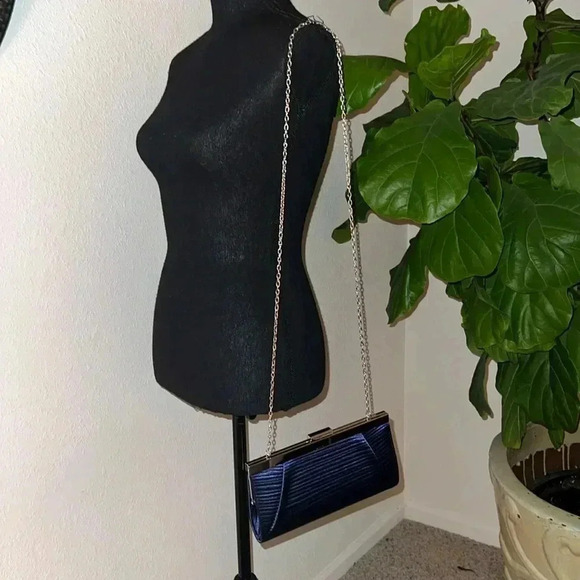 Midnight Blue Women’s Wave Pleated Silver Tone Hardware Evening Lightweight Clutch Bag Purse in EXCELLENT condition!! No holes or stains inside or outside.