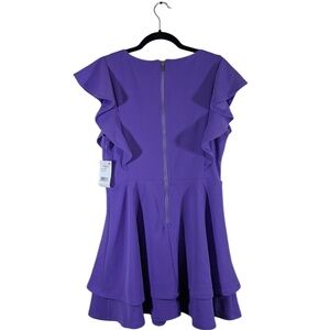 Dillard’s brand. Back zip closure. Flutter sleeves. Knee length. Tiered skirt. Plenty of stretch.