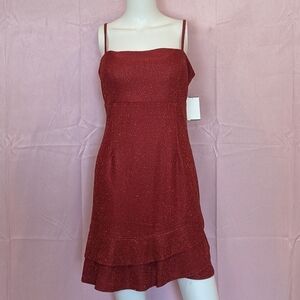 Midnight Doll Red Sparkly Ruffle Hem Festive Mini Dress size 13