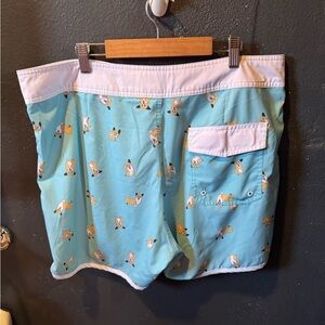 Make a splash with these aqua board shorts featuring a fun dog print. Ideal for beach outings or poolside relaxation.
