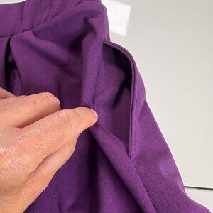 Standout skater skirt by Midnight Hour in a bold purple shade. Features structured pleats, hidden side pockets, and a playful black mesh contrast trim at the hem. Stretchy poly-spandex fabric for comfort and movement.