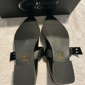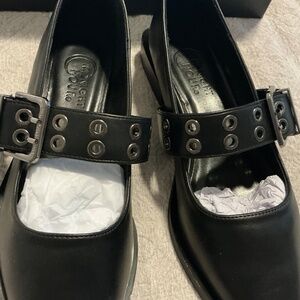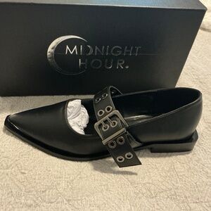 Buckle up witches! Vegan flats with metal, shiny tip. Never worn. Fast shipping, non-smoking environment.