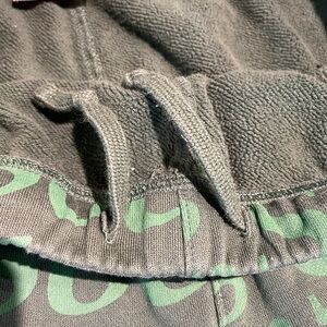 Midnight Organic sweatpants in excellent condition. Green with Sock It To Me written all over. Elastic waist with interior drawcord. Front pockets. Back patch pocket.