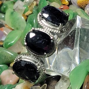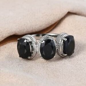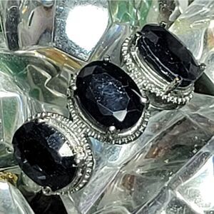 Midnight Sapphire 3 Stone Ring Size 10