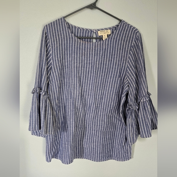Midnight Sky Chambray Stripe Top Bell Sleeves Size Large
