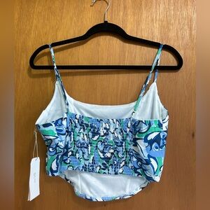 Midnight Sky Crop Top Boning Adjustable Straps Bandana Blue Elastic Back size L