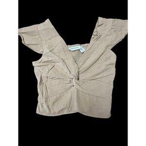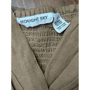 The Midnight Sky Crop Top in size M is a stylish and versatile addition to any woman's wardrobe. Made from a comfortable blend of rayon, linen, and cotton, this sleeveless top features a flattering V-neckline and a trendy cropped style. The solid tan color adds a touch of sophistication, perfect for pairing with high-waisted bottoms for a chic look. This crop top is designed to provide a flattering fit for regular size women, showcasing the brand's attention to detail and quality craftsmanship.