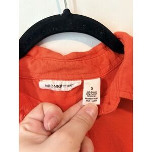 The Midnight Sky Cross Open Back Linen Blend Shirt is a stylish and comfortable option for women in size small. Featuring a solid red color and a relaxed fit, this blouse has a collared neckline and short sleeves, perfect for a bohemian or beach-inspired look. Made from a blend of rayon, linen, cotton, and other materials, this cropped top is ideal for those looking for a trendy and unique addition to their wardrobe.