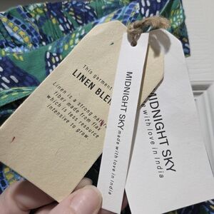 Midnight Sky Linen Green and Blue Patterned Women's Pants