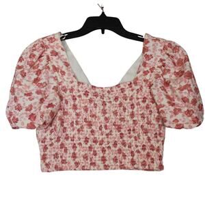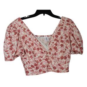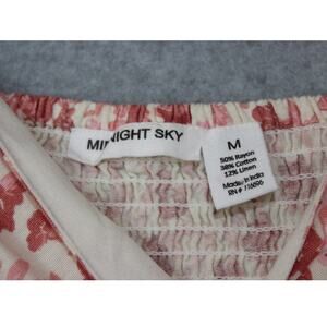 Midnight Sky NWT Womens Medium Floral Linen Blend Mini Crop Top V Neck Stretchy Back