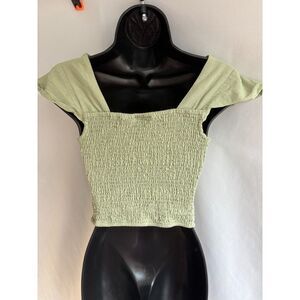 Midnight Sky Sage Green Flutter Sleeve Top S Romantic Front Tie Classy Blouse