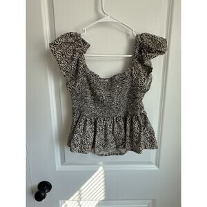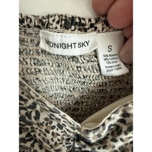 The Midnight Sky Size Small Woman Leopard Print Top is a stylish and trendy addition to any woman's wardrobe. This top features a bold leopard print design in a vibrant multicolor palette, perfect for making a statement. With a regular fit and size small, it is tailored to a flattering silhouette for a chic and fashionable look. The Leopard brand adds a touch of quality and uniqueness to this must-have wardrobe staple.