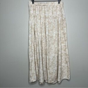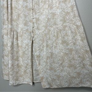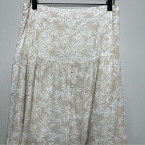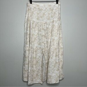 Midnight Sky Women Skirt Large Cream Tan Flax Rayon Button-Up Split Boho Resort